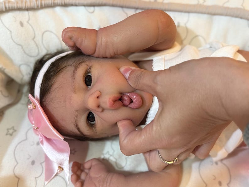PLEASE READ: This is a handmade item made by me. My babies are not perfect, but each one is unique, just like regular babies! My babies are made in a 2-part mold, but on this baby there will be no seams. My babies may also have birthmarks or marks left in the silicone from molding or sculpting (raised, indented, painted, or cosmetic). Babies may also have acne or fine bumps in some areas. The armpits may have extra skin when the arms are lifted. None of these are considered defects or flaws. These are attributes of handmade silicone dolls.